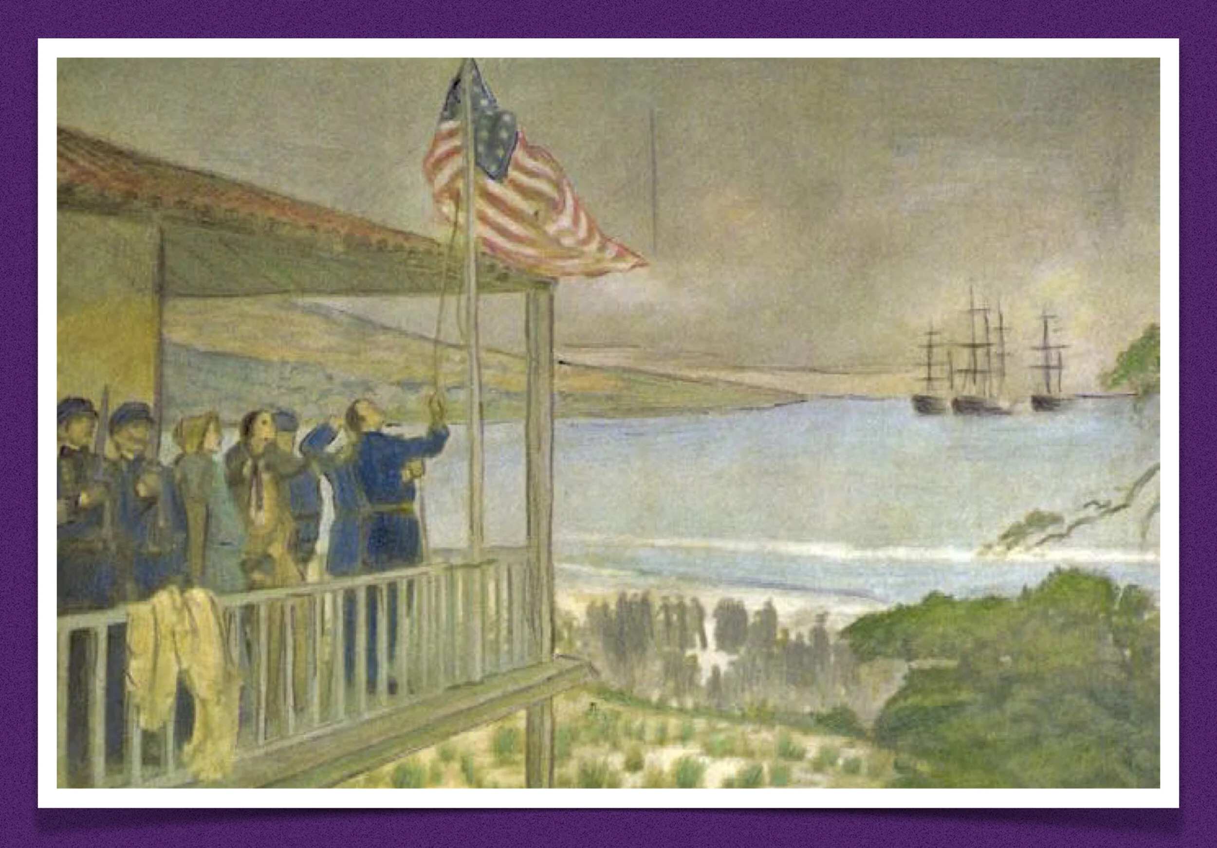 When American forces arrived in California, there was minimal resistance from Mexican forces. With only a few natural ports on the Pacific, it was a high priority for those planning the American war effort to seize the natural harbors in San Diego and San Francisco. In fact, General Kearny was instructed to march from Santa Fe, New Mexico far south enough to make sure that the San Diego Bay was to the north of his troops when they reached the Pacific Ocean. Monterey was also an important city to be captured in the conquest of California. At the time, in addition to having a natural bay, Monterey was also the capital of the Mexican territory of Alta California. Under the command of Commodore John Sloat, Monterey was captured by American forces with no resistance. The only shots fired was part of the 21-gun salute when the American flag was raised over the Custom House in Monterey.