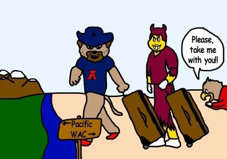 In a land far away from where the Golden Bear, Indian, and Trojan were living, there was a desert on the other side of the River Colorado that was under the rule of King Brechler I, in the realm of WAC. Here, the gods placed two new figures to civilize the people of the desert and bring them out of the darkness: the Sun Devil of Arizona State and the Wildcat of Arizona. During their time under the rule of Brechler, the Sun Devil and the Wildcat saw great success and were able to win the crown of the realm a combined 47 times. During all of this however, the Sun Devil and and Wildcat looked towards the Pacific Coast with envy when they saw all of the success that surrounded the Golden Bear and to a lesser extent, the Indian and Trojan.